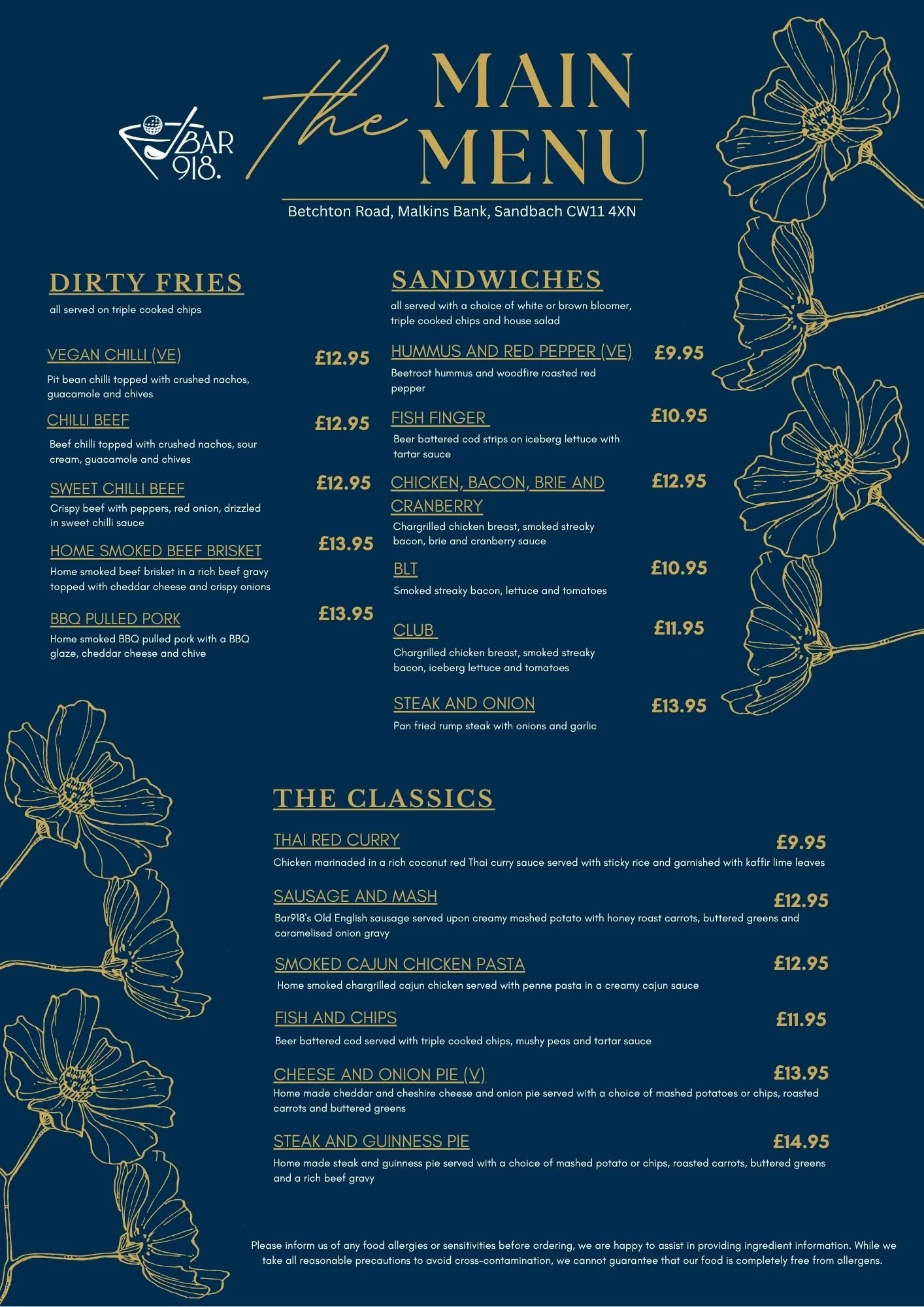 Nestled within the beautiful surroundings of Malkins Bank Golf Course, our restaurant offers a warm and welcoming space where great food meets stunning views. Whether you’re joining us after a round of golf or simply looking for a relaxing place to dine, we pride ourselves on serving freshly prepared dishes made with quality ingredients. From hearty breakfasts to leisurely lunches and indulgent dinners, our menu is designed to suit every occasion. With a friendly atmosphere and panoramic views across the course, it’s the perfect spot to unwind, celebrate, and enjoy memorable moments with family and friends..