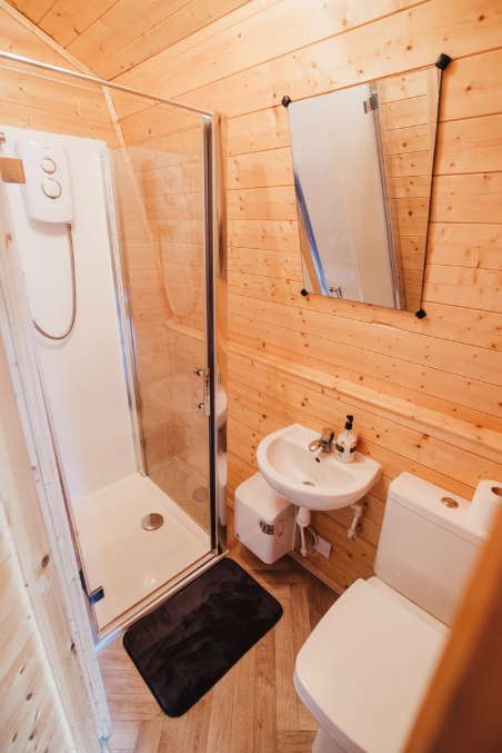 Each pod also includes a private bathroom with a walk-in shower, ensuring convenience and privacy throughout your stay. Practical touches such as a wardrobe/storage space, heating, and a fan help keep the environment comfortable in all seasons.