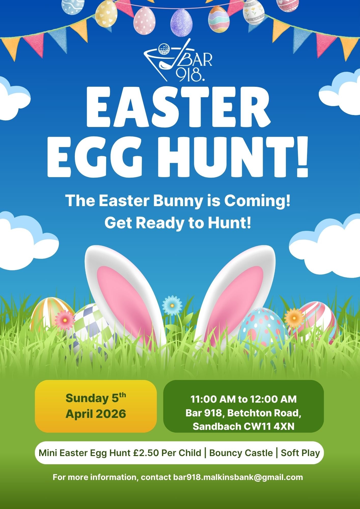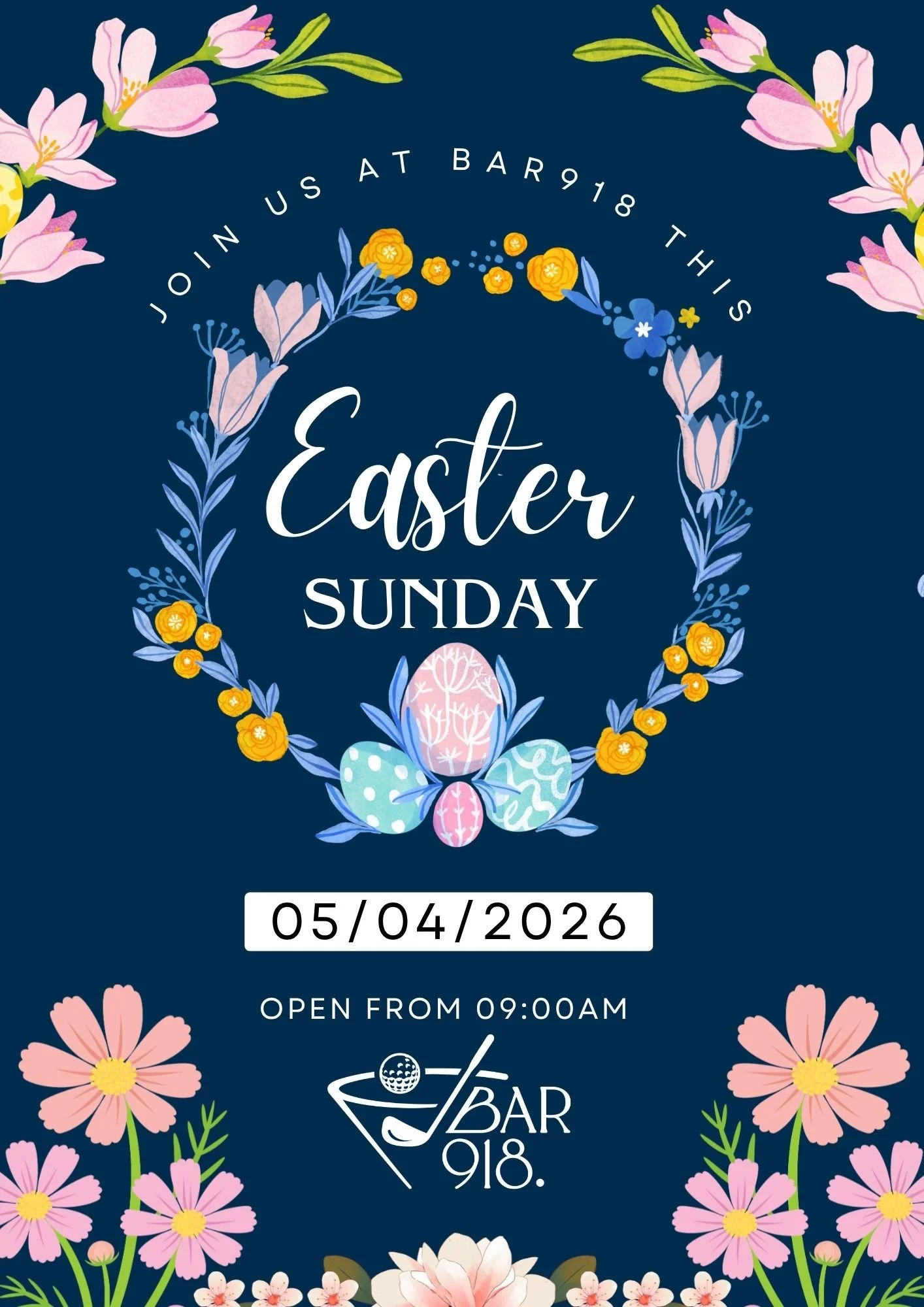 Celebrate Easter in style at Bar918 with a day full of great food, family fun, and a lively atmosphere. We’re proud to be serving our famous Sunday Dinner menu, featuring all the classic favourites – perfectly cooked roasts, delicious sides, and all the comforting flavours you love. It’s the ideal way to gather with family and friends this Easter weekend.