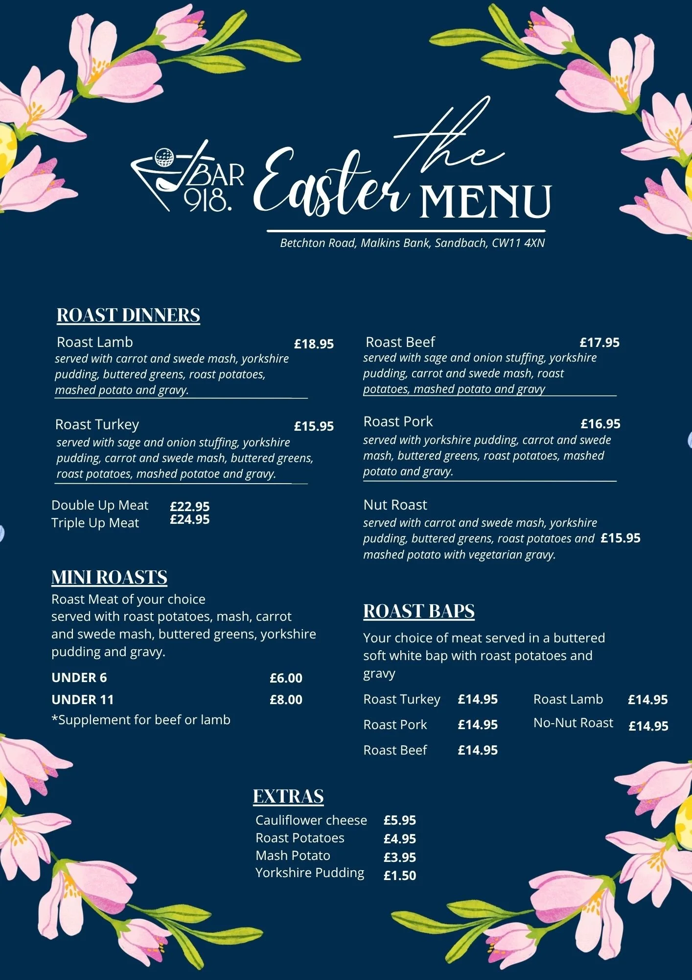 Join us this Easter Sunday at Bar918 for our famous Sunday Dinner!